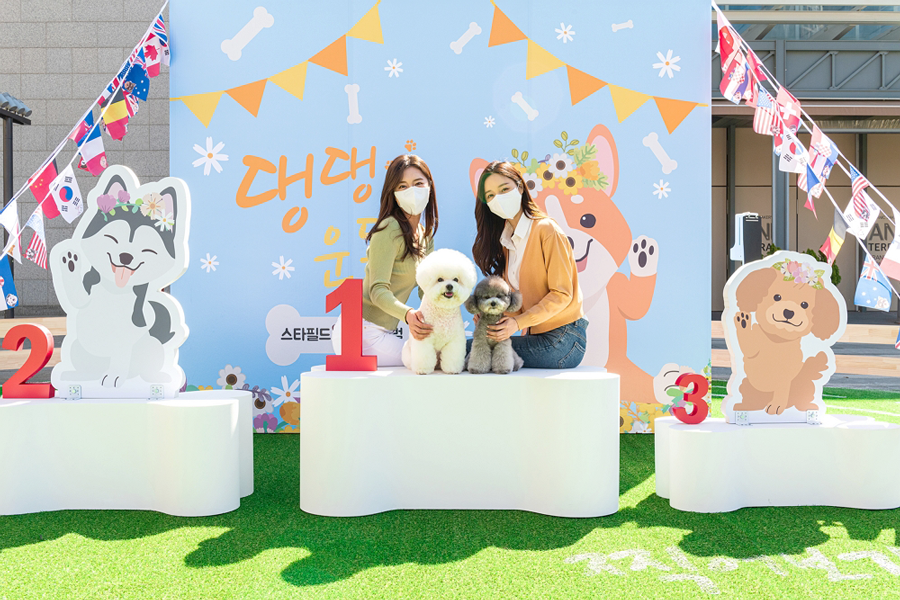 반려견과 마음껏 뛰놀 수 있는 ‘댕댕 운동회’는 스타필드 하남(4/1~4/14) 신세계백화점 앞 광장과 고양(4/2~4/14) 동측 광장에서 진행된다. 3가지 종목을 모두 성공하면 F&B 이용권을 증정한다. 시상대 콘셉트의 포토존에서 사진도 간직할 수 있다.