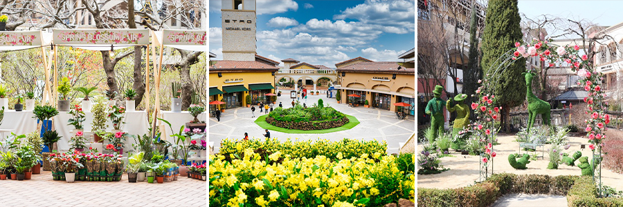 각 센터별로 이국적인 외경과 어우러지는 ‘토피어리 가든’ 및 제주를 그대로 옮겨 놓은 듯한 ‘유채꽃 정원’ 등의 특색있는 VMD(VISUAL MERCHANDISER)로 조성한 것이 특징이다. 매주 금,토,일에는 봄의 싱그러움을 담은 생화 및 다양한 소품 등을 판매하는 ‘스프링 블라썸 마켓’도 전 점포에서 동시 진행한다.