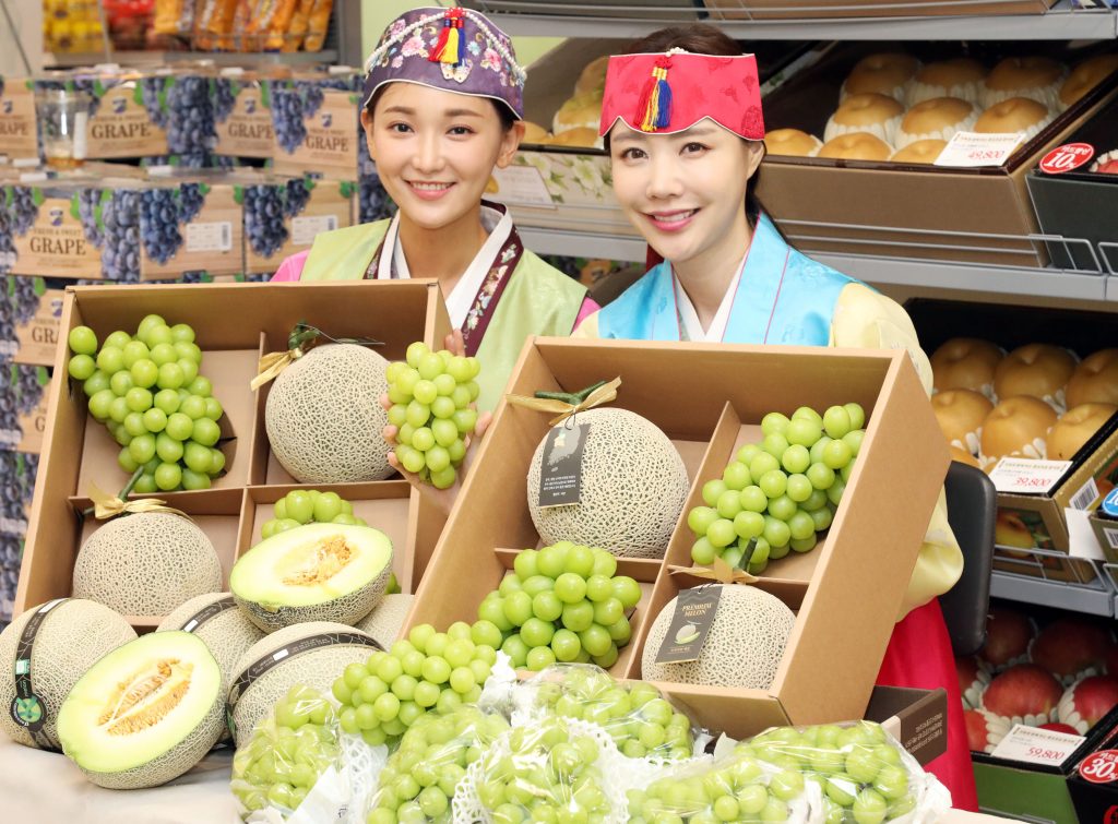 이마트는 올해 추석을 앞두고 전통적인 추석 선물세트에서 벗어나 달콤한 맛으로 최근 고객들에게 큰 인기를 끌고 있는 ‘샤인머스켓’과 ‘머스크멜론’을 함께 묶은 ‘프리미엄 샤론세트’를 선보인다.