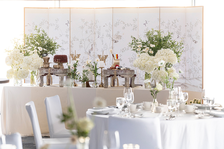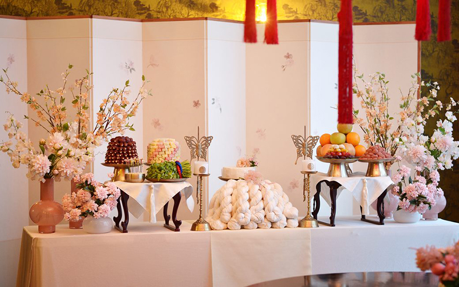 통창 너머로 펼쳐지는 황궁우를 배경으로 전통과 현대적인 감각을 담은 돌상 연출은 마치 고귀한 궁중 돌잔치를 진행하는 듯한 특별함을 더해 고객에게 잊지 못할 경험을 선사한다.