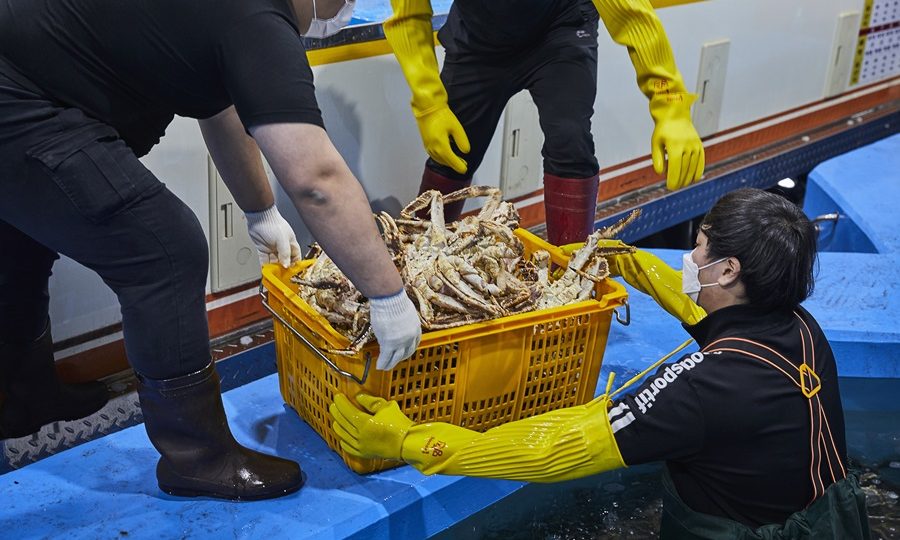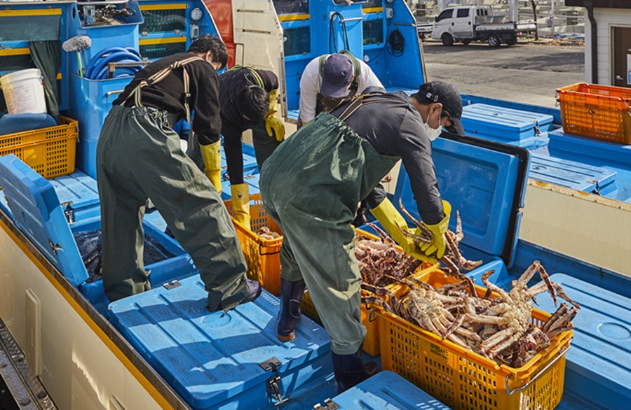춥고 먼바다에서 레드 킹크랩을 수송하는 이유가 있다. 킹크랩은 껍질이 단단할수록 속살은 더 부드럽다. 캄차카반도 일대의 깊고 차가운 바닷물은 레드 킹크랩의 껍질을 더욱더 단단하게 만든다. 킹크랩 조업선은 어획을 마친 후 나흘간 러시아의 자루비노항으로 이동한다. 수출을 위한 준비를 마치고 다시 이틀에 걸쳐 속초항으로 향한다.