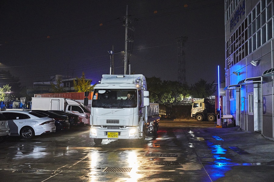 활어차는 어둠이 내려앉은 저녁 6시 인천 계류장에 도착했다. 조용했던 계류장에 레드 킹크랩이 들어서자마자 직원들이 몰려든다.