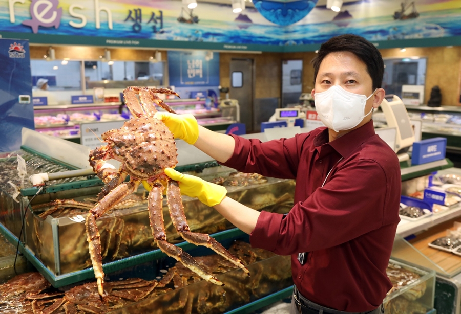 상민 이마트 바이어가 레드킹크랩을 소개하고 있다.