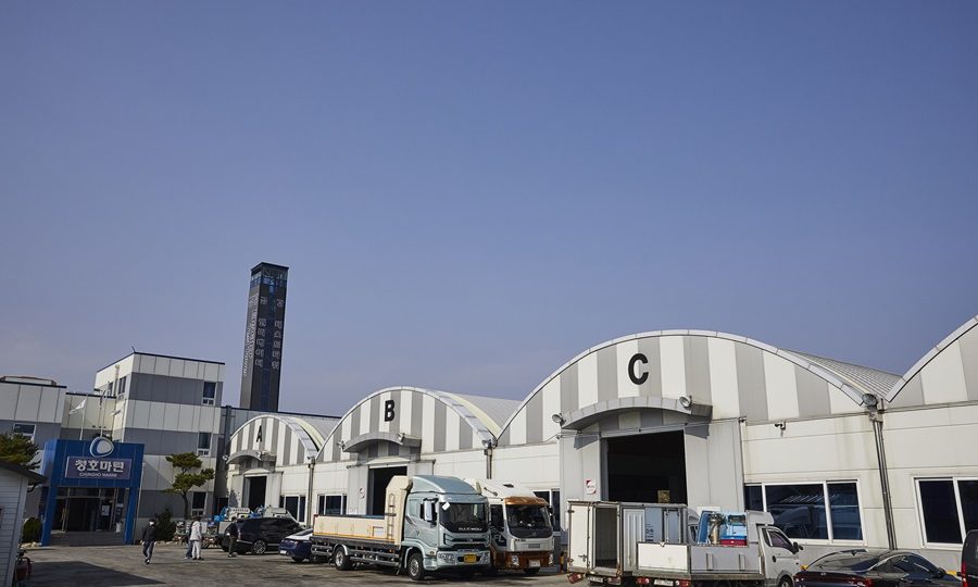 5,000평 규모의 속초 보세 창고에 들어서자 활게 수조가 시야를 가득 메운다. 저장 규모 150톤에 달하는 48개의 활게 수조 안에는 레드 킹크랩들로 가득하다.