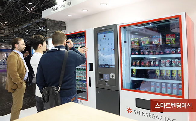 3. 스마트벤딩머신: 기존의 음료 자판기를 넘어 신선식품, 코스메틱, 가전, 의류 등 다양한 상품을 판매할 수 있고, 기기 중앙에 위치한 제어부 디스플레이를 통해 상품 및 행사정보, 고객 맞춤형 추천 서비스까지 가능한 벤딩머신