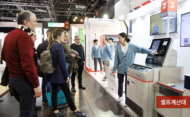 A. 셀프계산대가 큰 관심을 받았다. 전 세계 대부분 셀프 계산대는 지폐를 낱장으로 넣는다. 그러나 우리가 개발한 셀프계산대는 ATM처럼 한 번에 지폐를 넣고 인식할 수 있다. 특히 외국에서는 아직 현금을 많이 사용하기 때문에 해당 기능에 대한 반응이 좋았다. 셀프계산대의 디자인과 UX/UI에 대한 반응도 좋았다. 일반 모니터를 사용하지 않고 모바일에 익숙한 사람들을 위해 세로형의 디스플레이를 선택한 것이 좋은 평가를 받았다. 매대 구성이 예쁘다고 사진을 찍어가는 방문자들도 많았다.
