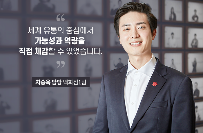 A. 현재 그룹사인 신세계백화점의 모바일 오피스, 페이퍼 리스, 카미치에 세 개의 시스템 운영을 담당하고 있다. 유로샵에서 부스 상담을 진행하기 위해서는 테크에 관한 기본적인 지식은 물론 외국어 능력이 필요해서 뽑힌 것 같다. 학창 시절을 해외에서 보내 영어, 불어에 능통하고 독일어와 스페인어도 어느 정도 소화 가능하다. 컴퓨터 공학을 전공했지만 취미와 자기계발의 목적으로 언어를 배우는 것을 좋아한다.