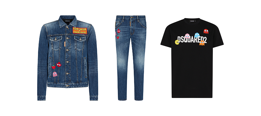 팩맨 컬렉션의 주력 상품인 데님 재킷은 남성과 여성용으로 각각 출시됐는데, 세련된 미디엄 워싱 색상의 재킷에 복슬복슬한 부클 소재의 팩맨 캐릭터들이 패치로 장식되어 있다. 디스퀘어드2가 팩맨 컬렉션을 위해 특별히 디자인한 로고 또한 패치로 장식돼 존재감을 드러낸다. 동일한 워싱의 팩맨 데님 진과 함께 착용하면 세련된 복고풍의 청청패션을 완성할 수 있다.