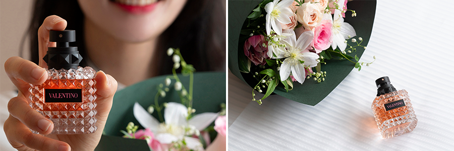 ‘도나 본 인 로마’는 사랑하는 사람과 함께 보내는 순간을 향기로 기억하게 해줄 매력적인 플로럴 프루티 계열의 향수로 핑크, 코랄 2가지 향 중 1종을 랜덤으로 증정한다.
