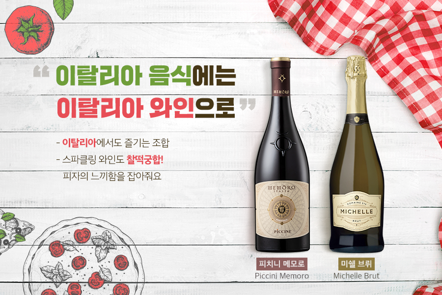 피자 역시 와인이 빠질 수 없습니다. 이탈리아에 가면 피자와 와인이 함께 올려진 테이블을 쉽게 찾아볼 수 있습니다. 그들에게 와인은 우리나라의 국과 같은 위상입니다. 그래서 피자에 국 같은 이탈리아 와인의 조합은 대체로 잘 어울려요.
