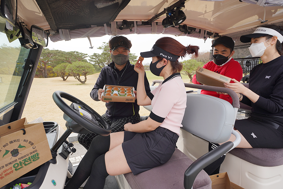 한편 신세계푸드의 ‘안전빵’은 골프 게임 중 발생하는 실수인 OB(Out of Bound), 헤저드(Hazard) 등이 없는 즐거운 게임을 기원하는 의미를 재미있게 표현한 테이크 아웃 간식이다. 국산 단팥, 슈크림, 호두 등을 넣어 골프공 모양으로 구워낸 빵으로 12개가 한 세트로 구성되어 있다.