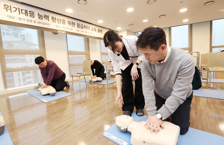 이마트가 본사 임원 및 관리 감독자(팀장)를 대상으로 응급처치 교육/훈련을 진행한다.