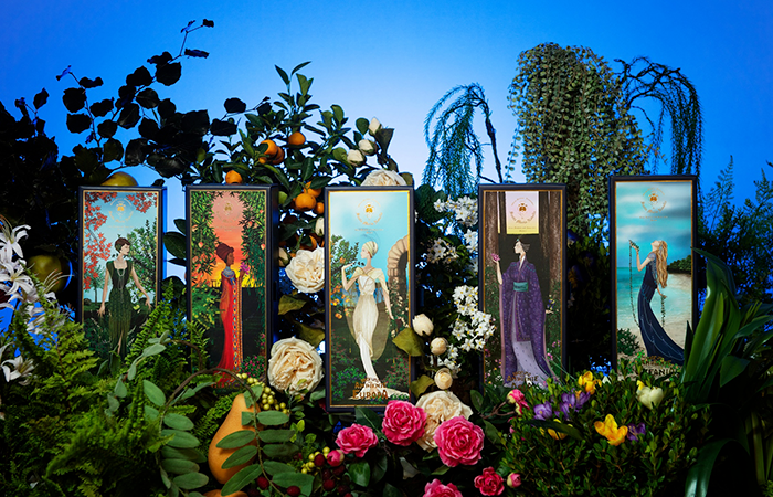 여류 화가 아벤다 알바나 릴라(Abbenda Albana Lilla)는 이번 컬렉션을 위해 아르데코 화풍이 돋보이는 다섯 명의 여인의 초상화를 패키지에 담았다. 각 제품 속 여인들은 다섯 개 대륙의 특징과 향을 완벽하게 묘사하고 있다.