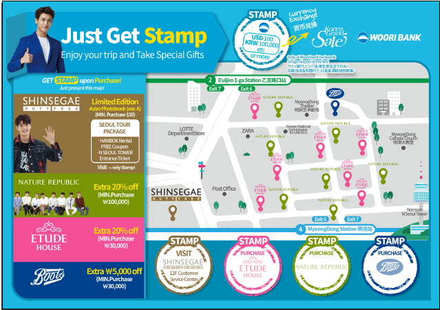 신세계면세점-우리은행 공항 환전소 프로모션 제휴 즐겁게 쇼핑하는 ‘명동 스탬프 투어’
