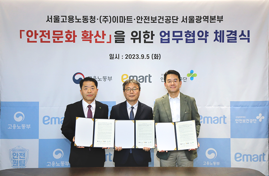 이마트는 대형판매시설 최초로 서울지방고용노동청, 안전보건공단 서울광역본부와 ‘사회 안전문화 확산을 위한 업무협약’을 맺었다고 5일 밝혔다.