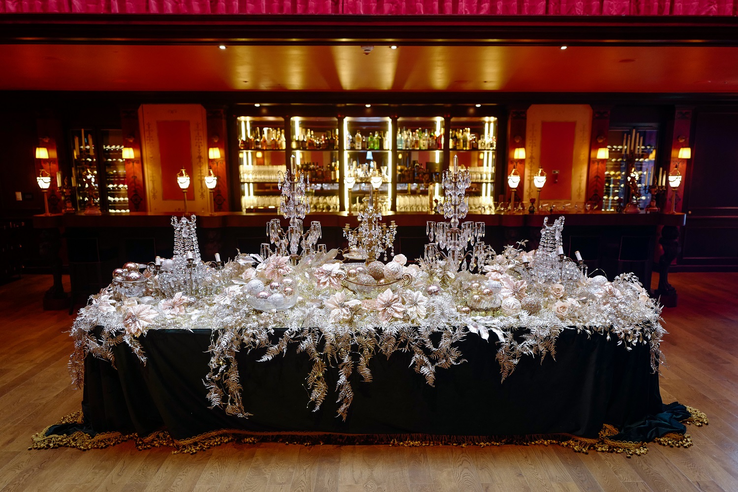 26층 라망시크레의 축제 테이블은 화려하게 반짝이는 연못을 연출해 테이블은 천장에서 떨어지는 채광에 비치는 빛이 장관을 연출한다.