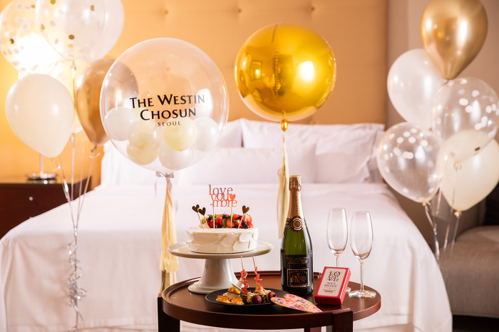 투숙 당일, 객실에 세팅되는 ‘조선델리 생크림 케이크’를 나눠 먹으며 달콤한 시간을 보낼 수 있으며, 특별한 날에는 빠질 수 없는 ‘온니 원 드링크’도 함께 마련된다. 디럭스와 디럭스 위드 아리아 타입에는 섬세한 버블에 붉은 과일과 감귤류의 과일 향이 느껴지는 에스텔라도 로제 스파클링 와인(칠레)을, 그리고 이그제큐티브와 스위트 타입에는 다크 초콜렛, 시나몬, 노란 무화과 향이 느껴지는 듀발 르루아 브뤼 샴페인(프랑스)을 제공하며 ‘카나페’를 추가로 제공해 샴페인과 함께 즐길 수 있도록 했다.