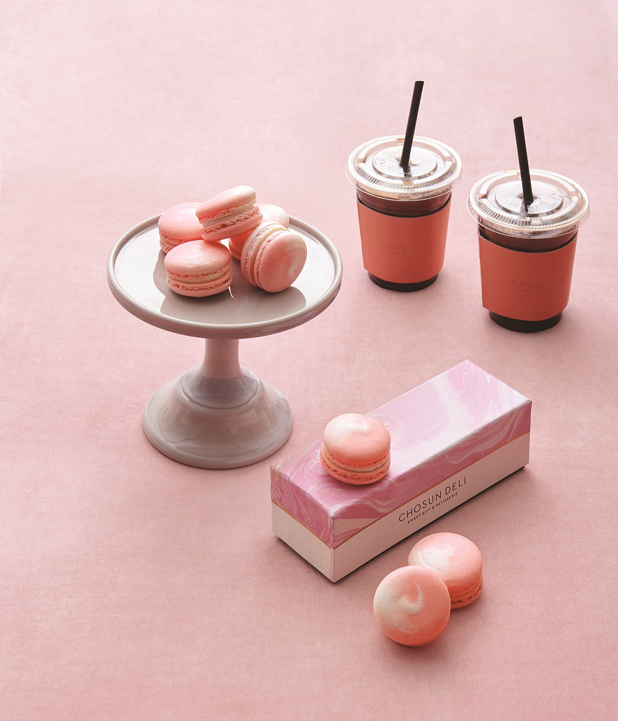 바닐라 크림 맛의 마카롱 세트(6개)는 조선델리 시그니처 마블링 형태를 리빙 코랄 컬러로 디자인하여 더욱 오묘하고 예쁜 색감을 자아내며, 조선호텔만의 비벤떼 원두로 만든 커피(2잔)도 패키징까지 리빙 코랄 컬러로 제작해 화사함을 더했다.
