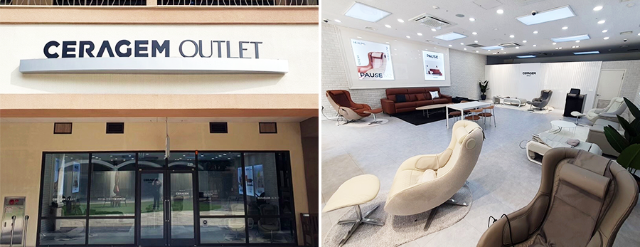 세라젬 아울렛 스토어는 파주 프리미엄 아울렛 1층 시계탑 인근에 약 40평 규모로 문을 열었다. 세라젬을 대표하는 인기 라인업의 리퍼브(Refurbish) 제품을 합리적인 가격에 판매한다.