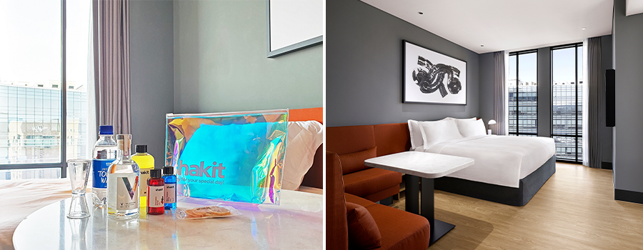 모던하면서도 감각적으로 꾸며진 객실에서의 1박과 국내 최초 DIY 칵테일 키트 회사인 쉐이킷(Shakit)과 협업하여 칵테일을 직접 만들어 즐기는DIY 칵테일 키트인 ‘서머 버킷 리스트 칵테일 키트’를 제공한다.