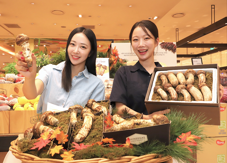 신세계는 전국 자연 송이의 유명 산지인 강원도 인제, 강릉 등에서 인증받은 고품질의 송비 버섯만을 준비했다. 가격은 시세기준.