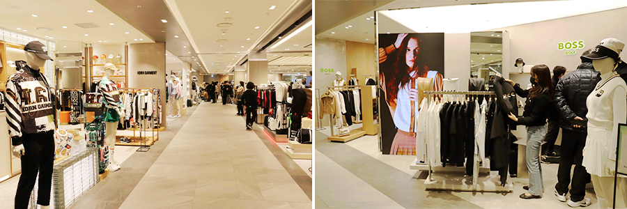 오는 23일에는 퍼포먼스에 기반한 개성 있는 프리미엄 골프웨어 브랜드 ‘아이스버그(ICEBERG GOLF)’와 파격적인 스트리트 감성의 골프 브랜드 ‘욜프골프(YORF GOLF)가 새로 문을 연다. 또 내달 8일에는 덴마크 슈즈 브랜드 ‘에코(ECCO)’가 골프 웨어를 강남점에서 전 세계 최초로 선보인다.
