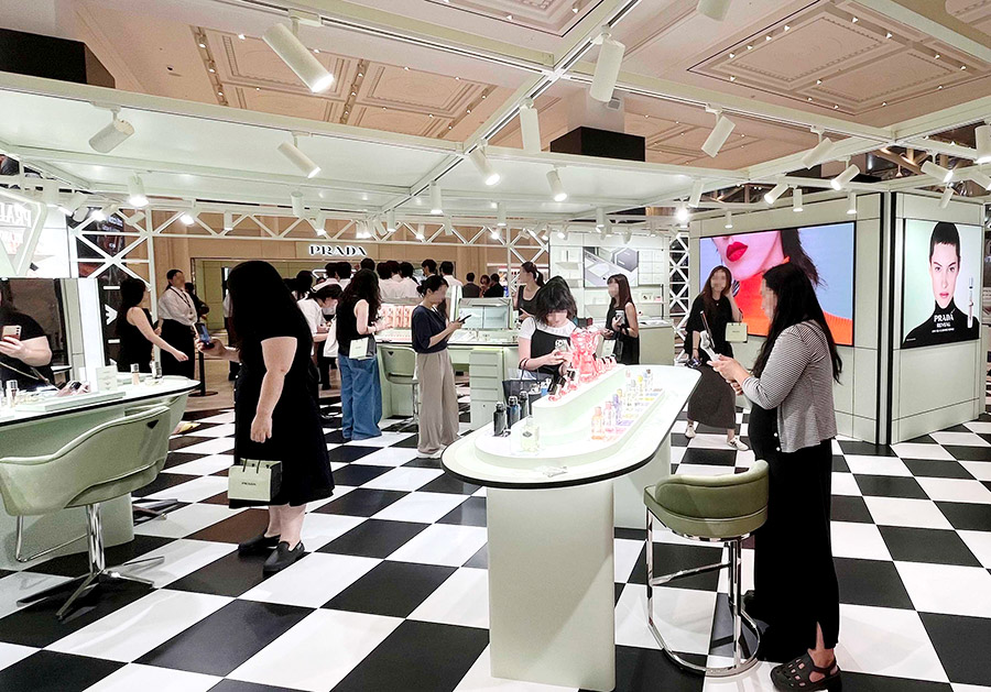 8월 20일 정규 매장 오픈에 앞서 강남점 1층 오픈스테이지에 팝업스토어를 열고 고객들에게 프라다 뷰티를 소개한다.