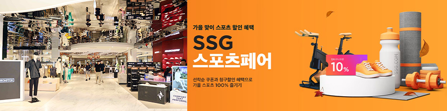 신세계백화점 등 신세계 그룹 상품을 한데 모은 SSG닷컴에서 스포츠 · 아웃도어 의류와 용품을 최대 75% 할인하는 스포츠페어를 벌인다. (10/16~22)