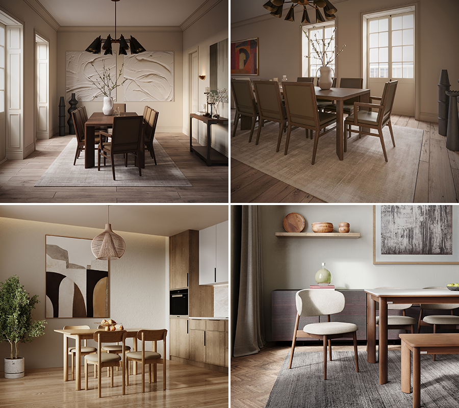라메종 컬렉션 특유의 정제된 직선 실루엣과 차분하고 짙은 색감, 자연스러운 나뭇결로 클래식하고 중후한 멋의 다이닝 공간을 만들어 준다.