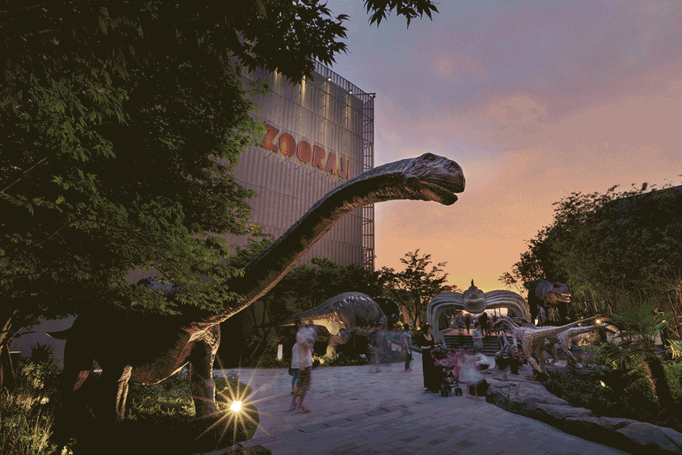 “글로벌 복합쇼핑몰로 거듭날 수 있었던 이유 중 하나인 주라지 야외 테마파크 입니다. 영화에서 본 거대한 티라노사우르스와 공룡 뼈 터널, 공룡 알 등 어린이 고객의 상상력을 키울 수 있는 볼거리가 가득하지요. 도심 속에서 공룡들과 만날 수 있어 어린이에게는 놀이터, 부모님들에겐 휴식 공간 역할을 합니다. 이런 이색적인 테마 덕에 주라지는 부산뿐 아니라 주변 지역에서 일부러 찾아오기도 하지요.”