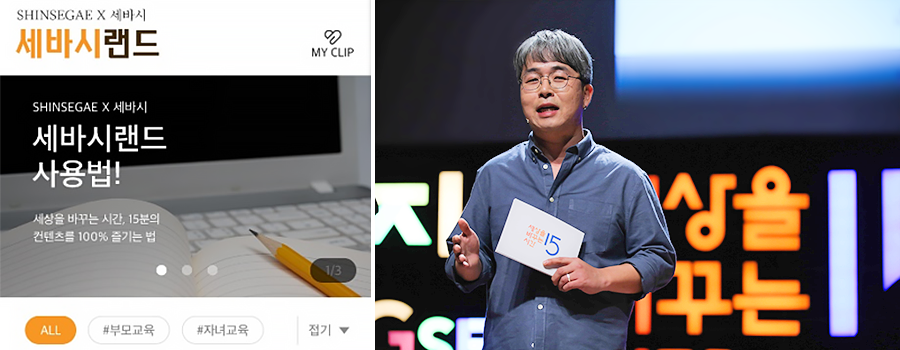 신세계는 4월 29일부터 모바일 앱을 통해 인기 교육 채널인 ‘세바시(세상을 바꾸는 시간 15분)’ 영상을 유통업계 최초로 큐레이션 해준다.