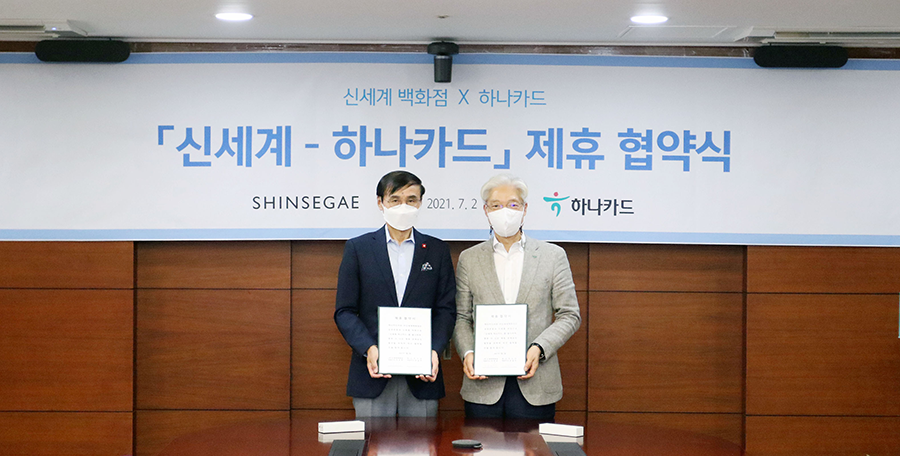 신세계는 이달 2일(금) 하나카드와 업무 제휴 협약(MOU)을 맺고 ‘모두의 신세계 하나카드’를 새롭게 출시했다. 신세계는 대전·충청 지역 내 최대 점유율을 차지하는 하나카드와의 제휴를 통해 중부권 신규 고객 확보를 가속화 한다는 계획이다.