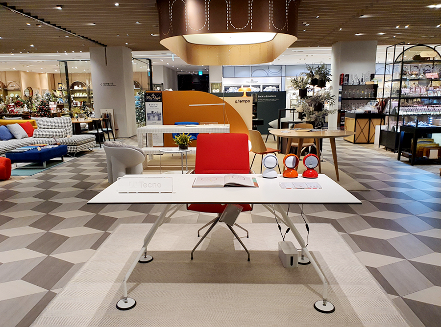 이번 팝업 스토어에서는 자노타,아르떼미데, 테크노, 휴먼스케일 등 4개 브랜드가 참여한다.인체공학 디자이너 닐스 디프리미먼트가 만든 휴먼스케일의 오피스 가구부터 세계적으로 160만 개 이상 판매된 이태리 브랜드 테크노의 노모스 테이블까지 다양한 제품을 한자리에서 만날 수 있다.애플 신사옥을 설계한 건축가 노먼 포스터와 협업한 노모스 테이블은 뉴욕현대미술관과 퐁피두센터 미술관에 영구 소장되어있다.