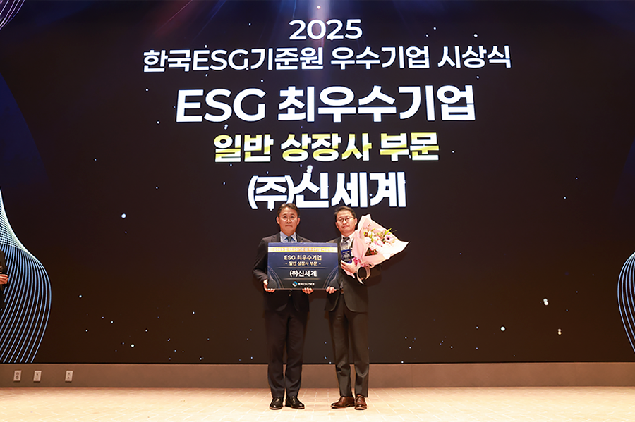 신세계백화점이 4일 서울 여의도 한국거래소에서 열린 ‘2025년 한국ESG기준원 우수기업 시상식’에서 ‘ESG 우수기업 부문 최우수기업’을 수상했다.