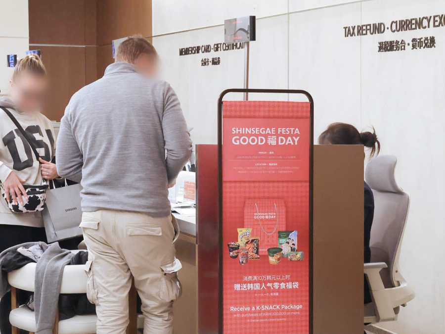 또, 중국인 방문이 몰리는 춘절 기간에 맞춰 오는 22일까지 올 해 업계 최초로 글로벌택스프리(GTF)와 협업해 추가 환급 프로모션을 진행하고, 페이먼트사와 협업하여 업계 최고 수준인 유니온페이 10% 즉시 할인, 위챗페이 50위안 즉시 할인, 중국 초상은행 카드 캐시백 제공에 나선다.