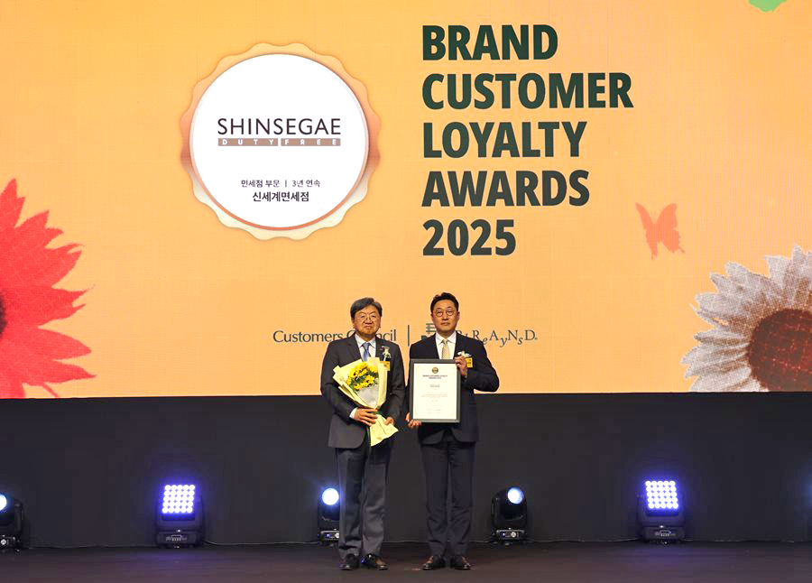 신세계면세점이 ‘2025 브랜드 고객충성도 대상’에서 면세점 부문 1위에 선정되며 3년 연속 수상의 영예를 안았다.
