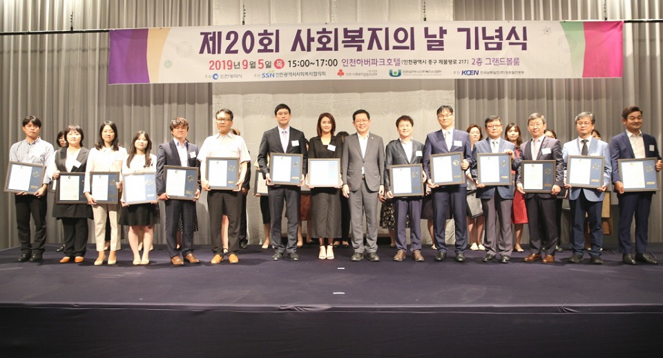 지난 5일, 인천 중구에 위치한 하버파크 호텔에서 민병도 신세계면세점 인천공항점장과 박남춘 인천광역시장을 비롯해 이윤성 인천광역시사회복지협의회장, 정명환 인천사회복지공동모금회장, 이배영 인천광역시사회복지사협회장 등이 참석한 가운데 ‘제20회 사회복지의 날 기념행사’가 개최됐다.