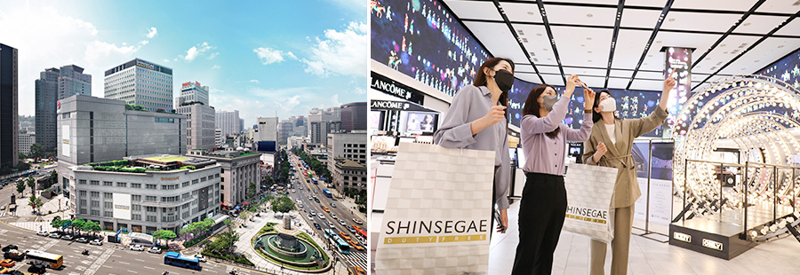 신세계면세점은 22년 상반기에 트렌드에 맞추어 K패션, K뷰티 매장을 리뉴얼 했으며 방문 당일 10층 대형 미디어 파사드에 환영 메시지를 띄우고, 자체 제작한 방역 키트 선물 등을 준비하며 단체 관광객 맞이에 만발의 준비를 하고 있다.