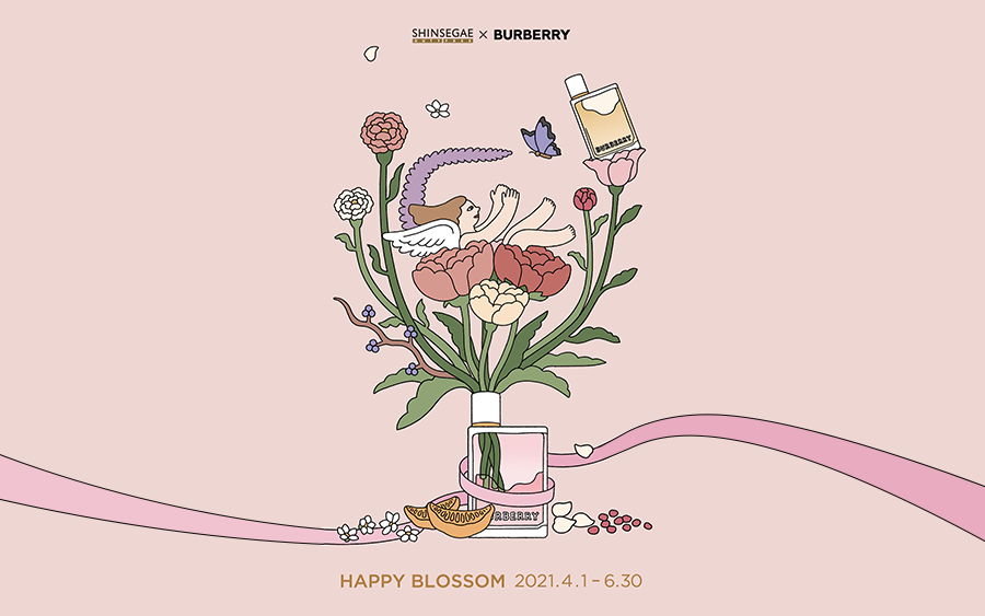 신세계면세점은 캠페인의 두번째 시즌 테마 ‘해피 블러썸’과 어울리는 글로벌 유명 코스메틱 브랜드 ‘버버리 퍼퓸(Burberry PFM)’과 손을 맞잡았다.