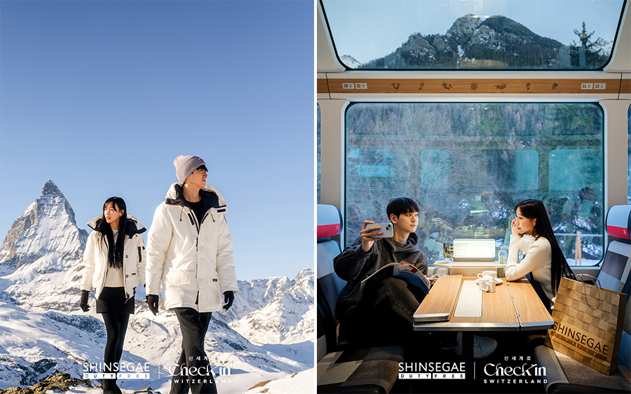 두 사람이 신세계면세점 에르노 매장과 캐나다구스 팝업스토어에서 패딩, 모자 등 겨울 아이템을 맞춰 입고, 쇼파드 및 멀버리 매장에 들러 악세사리를 둘러보는 장면은 겨울 여행을 준비하는 면세 쇼핑의 묘미를 알려주는 포인트다. 스위스에 도착해 구매한 아이템을 착용하는 장면에서 커플 여행기의 설렘을 생동감 있게 느낄 수 있다.
