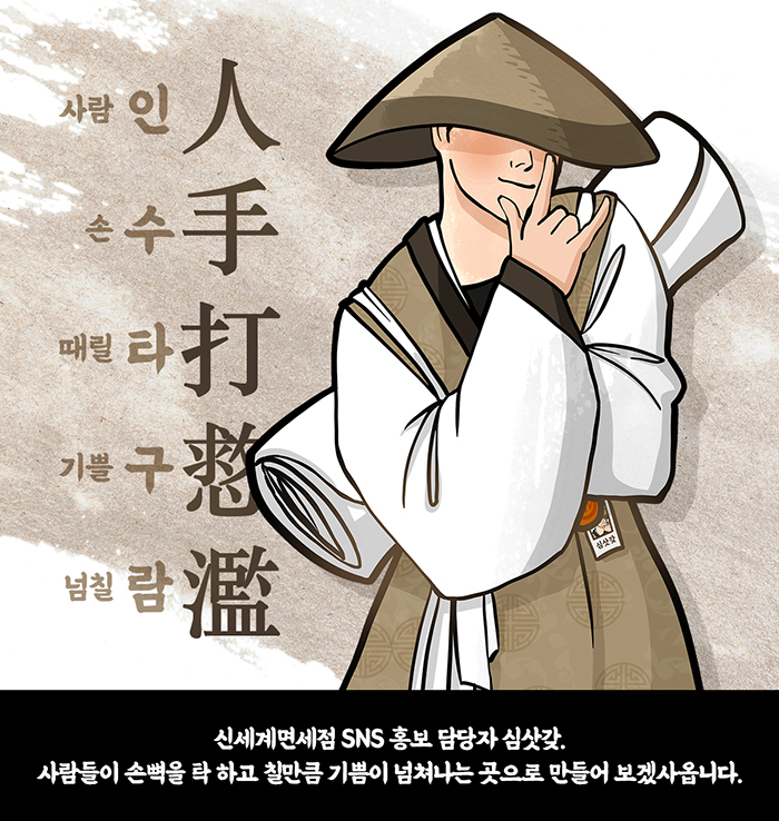 신세계면세점의 초성(ㅅㅅㄱㅁㅅㅈ)을 활용해 만들어진 ‘심삿갖’은 조선시대 명례방(현재 명동)에서 상단을 운영 중 우연히 타임슬립한 거상(巨商)으로, 신세계면세점의 홍보 담당자로 취직 후, 공식 SNS채널의 운영을 맡게 된다는 설정이다.
