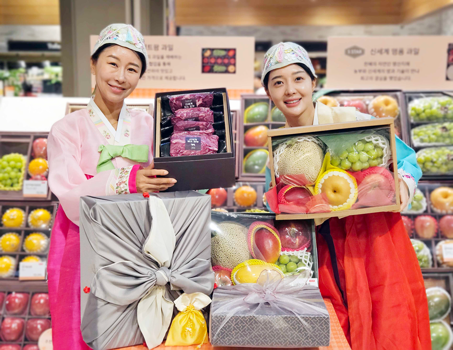 대표 상품으로 샤인머스켓과 멜론, 사과, 배, 애플망고가 하나씩 ‘담긴 햄퍼 다담(6만원)’, 1등급 한우 등심과 불고기, 국거리 등으로 구성한 ‘신세계 암소한우 행복(15만원)’ 등이 있다.