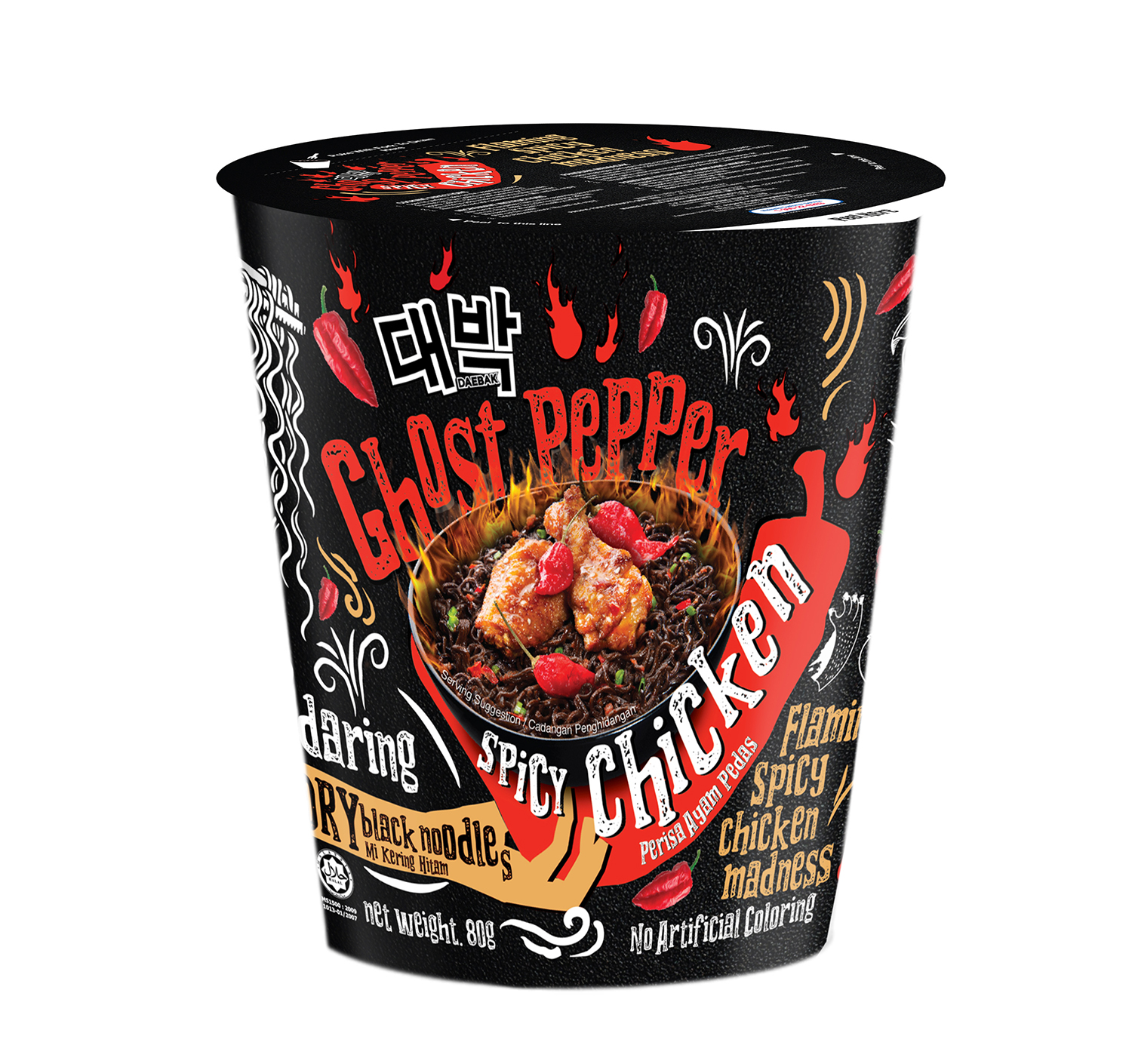 ‘대박라면 고스트 페퍼 스파이시 치킨 맛’은 혼이 나갈 정도로 맵다는 의미를 가진 고스트 페퍼를 이용해 만들어 스코빌 척도(매운맛 지수)가 1만 2,000 SHU에 이른다.