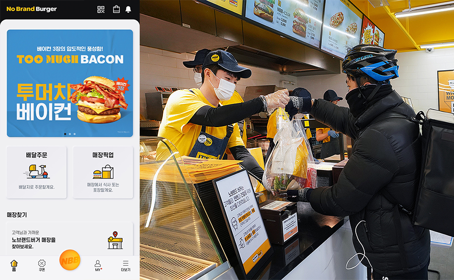 1일 신세계푸드에 따르면 지난 1월 한 달간 전국 ‘노브랜드 버거’ 매장(기존점 기준)의 판매량을 분석한 결과 배달 판매량이 전월 대비 11% 늘어난 것으로 나타났다. 특히 ‘노브랜드 버거’ 전용 앱을 통한 배달 판매는 같은 기간 17% 늘며 배달 판매량 증가세를 이끌었다.