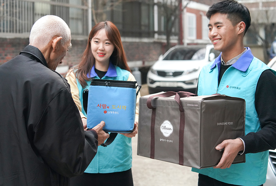 신세계푸드가 설 명절을 맞아 독거노인 가정에 명절음식을 전하는 사랑의 도시락 나눔 행사를 펼쳤다.