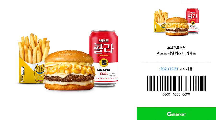 오는 15일 오후 6시 G마켓의 라이브 커머스 플랫폼 G라이브에서 진행되는 특별 라방에서는 ‘노브랜드 버거’ 콰트로 맥앤치즈 세트 e쿠폰 1만 장을 30% 할인 판매한다. 또한 대표 인기 메뉴인 NBB 시그니처 버거 세트, 메가바이트 버거 세트, 코울슬로치킨 버거 세트 3종과 치킨 시저 샐러드의 e쿠폰을 15% 할인된 가격으로 만나볼 수 있다.