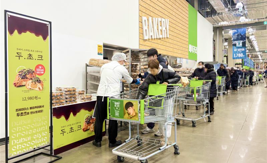 신세계푸드가 이마트와 트레이더스 베이커리에서 선보인 두바이 스타일 디저트 ‘두초크(두바이 스타일 초코 크루아상)’의 인기에 힘입어 판매를 확대한다.