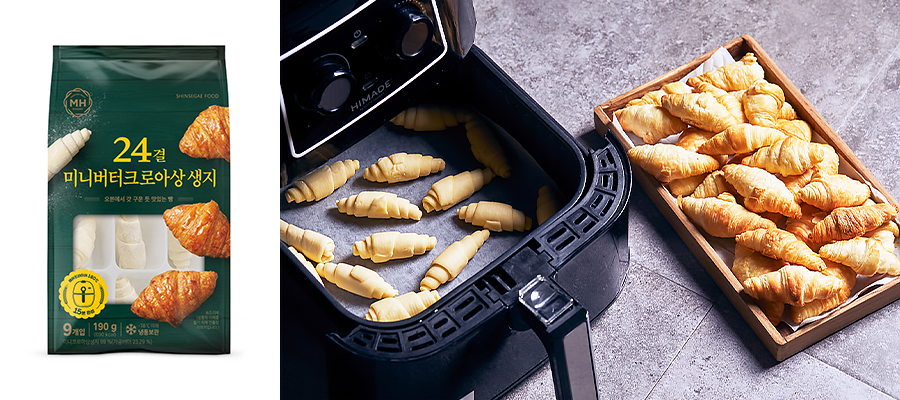 7일 신세계푸드에 따르면 지난해 냉동생지 전체 매출은 2021년도 대비 251% 큰 폭으로 성장한 것으로 나타났다. 지난 1월 냉동생지 매출 역시 전년 동기 대비 65% 늘며 꾸준한 성장세를 유지하고 있다. 냉동생지는 성형을 마친 빵 반죽을 급속 동결시킨 것으로 반죽, 발효, 성형 등 번거로운 조리과정 없이 해동 후 오븐이나 에어프라이어에서 조리하면 간편하게 갓 구운 빵을 즐길 수 있는 제품이다. 특히 크로아상 기준으로 냉동생지 1개 가격은 일반 빵집에서 판매하는 완제품의 6분의 1 수준으로 저렴한 것이 특징이다.