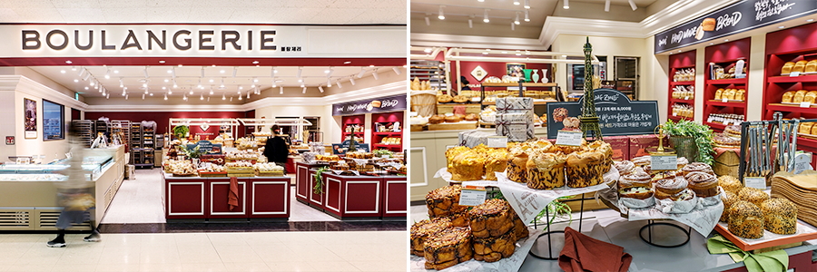 실제 신세계푸드는 ‘블랑제리’ 용산점을 업그레이드 리뉴얼하면서 고풍스러운 느낌의 브릭레드 컬러와 바로크풍 문양을 사용해 유러피안 모던 콘셉트의 인테리어로 매장 분위기를 살렸다. 또한 인테리어 톤앤매너와 제품별 특성을 맞춘 3가지 베이커리 존도 구성했다. 풍성하고 임팩트 있는 비주얼과 사이즈의 대형 빵으로 구성된 ‘로프존(Loaf Zone)’, 고객들이 부담 없는 가격으로 쁘띠 디저트와 쿠키 등을 고급스러운 포장에 담아 구입할 수 있는 ‘번들존(Bundle Zone)’, 오븐에서 갓 나와 온기와 향이 살아있는 빵을 즉석에서 만나볼 수 있는 ‘라이브존(Live Zone)’ 등으로 나눠 고객들이 제품의 특성을 제대로 경험할 수 있도록 했다.