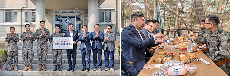신세계푸드가 MZ 세대 장병들을 격려하기 위해 대안육 ‘베러미트(Better Meat)’로 만든 간편식을 위문품으로 전달했다.